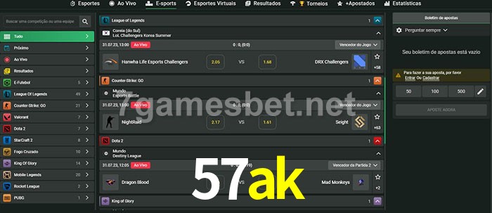 O 57ak oferece uma grande seleção de opções de apostas em e-sports com probabilidades competitivas